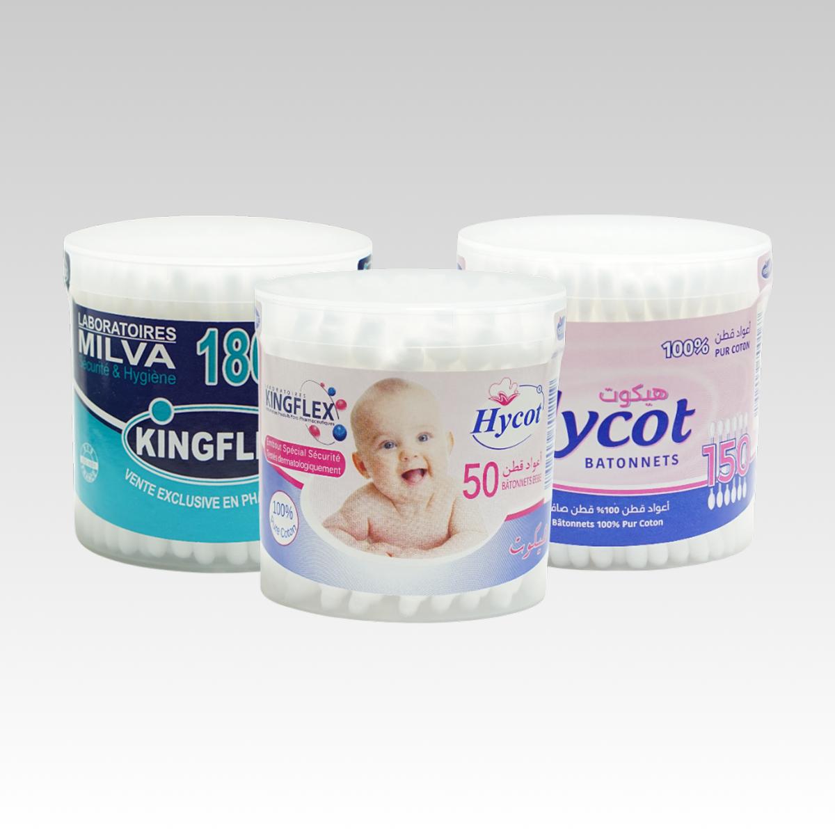 À double embout en coton hydrophile de qualité supérieure, blanchit, doux et absorbant Les coton-tiges KINGFLEX sont utilisés dans différents domaines: médical, cosmétique, etc… Les coton-tiges KINGFLEX sont présentés en boites transparentes de 90 et 180 tiges.