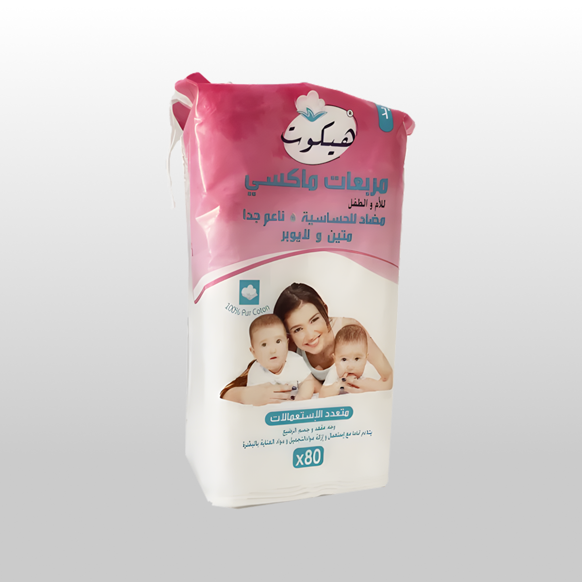 Les maxi carré sont fabriqués en coton 100% pur, blanchi et hydrophile. Ils sont ultra absorbants, extra doux, hypoallergéniques et résistants. Les maxi carrés sont conçus pour tous les soins du bébé: nettoyage en douceur du visage, du corps et siège du bébé. Présenté en deux modèles: paquet de 80 pièces et paquet de 40 pièces.
